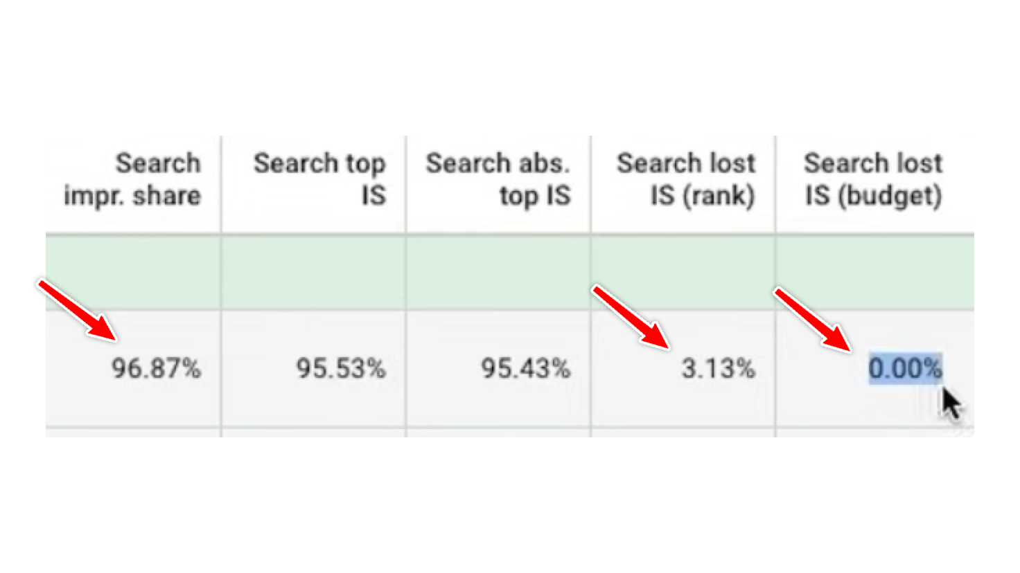 - Impression share ~95–100%? You’re already taking almost everything available; there aren’t enough impressions left for extra spending.